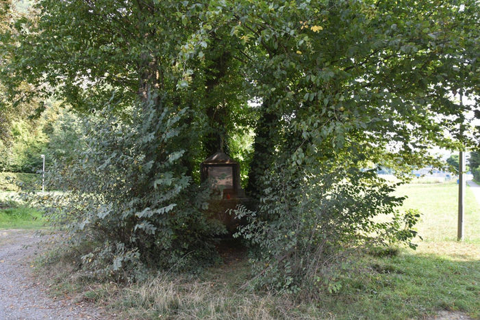 Durant l'été 2019, les membres du groupe "Sentiers et chemins" du PCDR d'Aywaille ont, très efficacement, nettoyé les abords de cette borne-potale.