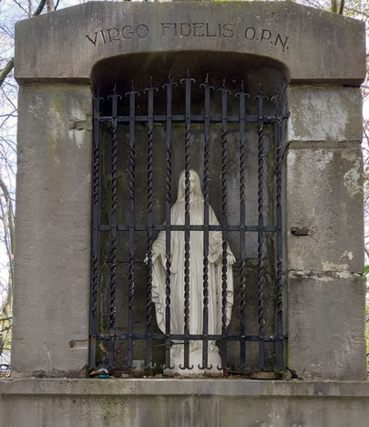 Peu après - en septembre, d'après M. Gustave Francotte - les dégâts furent réparés par le placement d'un nouveau linteau dû au concours de MM. Jos. Burnotte, curé; Francotte, bourgmestre; Victor Poncelet (fils de Henri) et Mignolet, propriétaire du monument. Taillé d'après croquis de l'architecte A. Dufays, il porte l'inscription VIRGO FIDELIS 0.P.N."