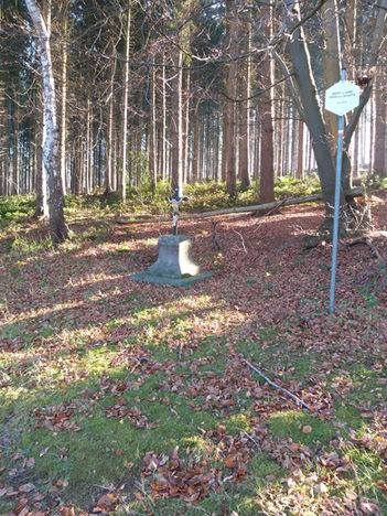 Au sommet de ce mont se dresse une croix de fer soutenue par un gros bloc de pierre bleue sur lequel est gravée l'inscription suivante :