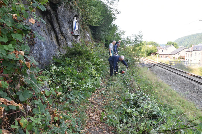 Cette "grotte" a été aménagée, peu après 1930, à l'initiative de l'Abbé Gustave Hubaux, curé de Dieupart décédé en 1935.