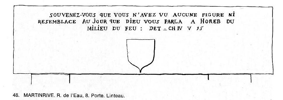 Ce linteau massif se trouve au-dessus de cette maison du début du XVIIIe siècle en moellons de grès et de calcaire. L'inscription sur ce linteau surmonte un écusson aveugle.
