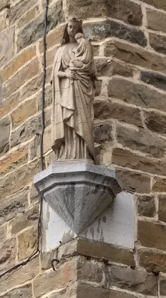 Belle potale intégrée à l'angle d'un mur de ce bâtiment appartenant à la Fabrique d'église. Une statue de la Vierge à l'enfant est posée sur un socle à base octogonale supporté par une console en fuseau en pierre de taille.