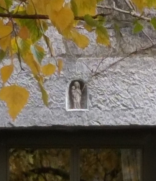 Très petite potale en plein cintre creusée directement dans le linteau en pierre calcaire de la porte de cette maison.