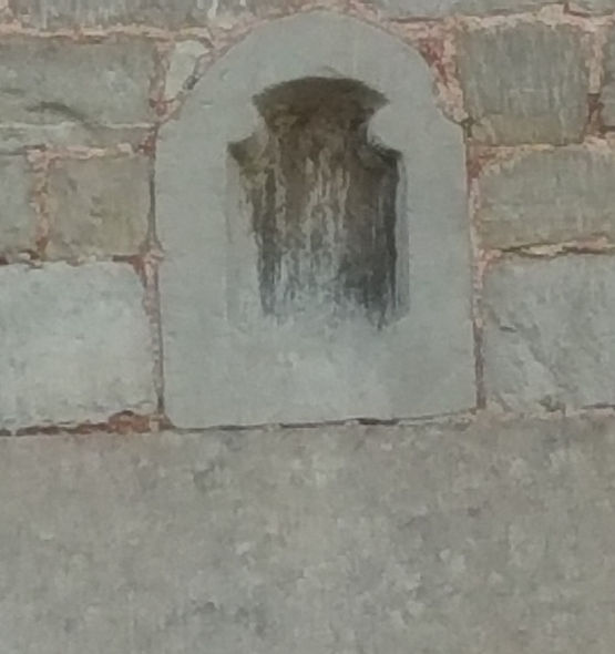Petite potale, en anse de panier et aux montants travaillés, directement creusée dans un bloc de petit granit.