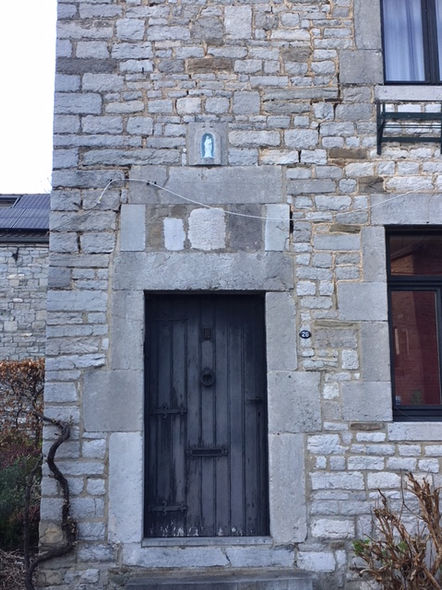 Maison en calcaire datée de 1751, répertoriée dans l’Inventaire monumental de la Belgique .